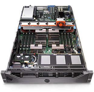 Energy-Efficient Interior: The PowerEdge R815 includes efficient high capacity fans that spin in accordance toserver workload demands, helping to reduce unnecessary noise when possible. In addition, the internal shrouding and logical layout of the internal components aids with airflow direction, helping to keep the server cool. |